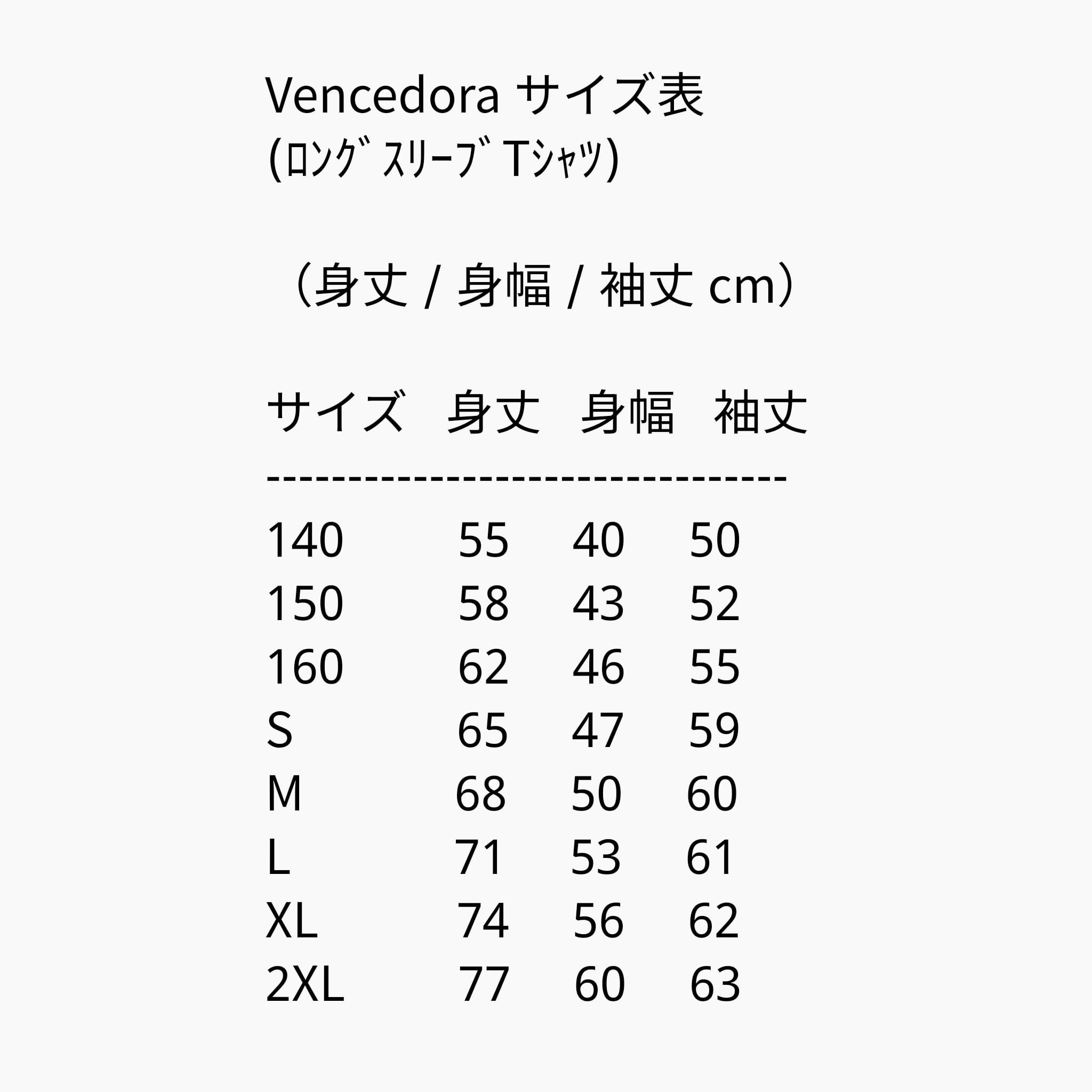 Vencedora サイズ表